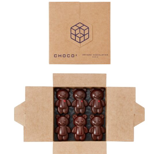 フランボワーズのくまと、キャラメルとヘーゼルナッツを二層にしたくまの2種で6体入り3,996円。